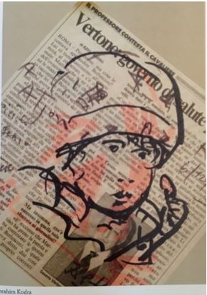 …bashkë me Edën duam të tregojmë që Kodra i vonë u miqësua shpejt dhe me djalin tonë, Atjonin dhe ai e deshi atë si një gjysh mitik, që kur e pa, foshnjë në Romë, diku aty afër “Piazza di Spagna”, teksa rrekej të afrohej dhe befas binte. Kodra tha: “Po shpik të ecmen” dhe nisi ta vizantonte mbi gazetën që gjendej mbi tryezën tonë, ashtu siç ai e kishte zakon. Na skiconte dhe ne, kë t’i shkrepej. I ruajmë ato portrete me dashuri.