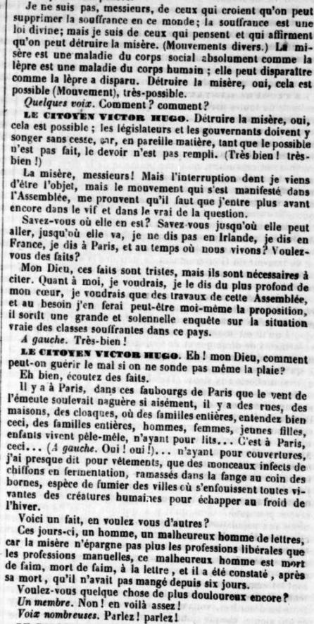 1849- Fjalimi i Victor Hugo për shkatërrimin e mjerimit para Asamblesë Kombëtare Franceze