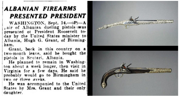 1936- Kur ambasadori Hugh G. Grant i prezantoi presidentit Roosevelt pistoletat shqiptare të blera në Shkodër