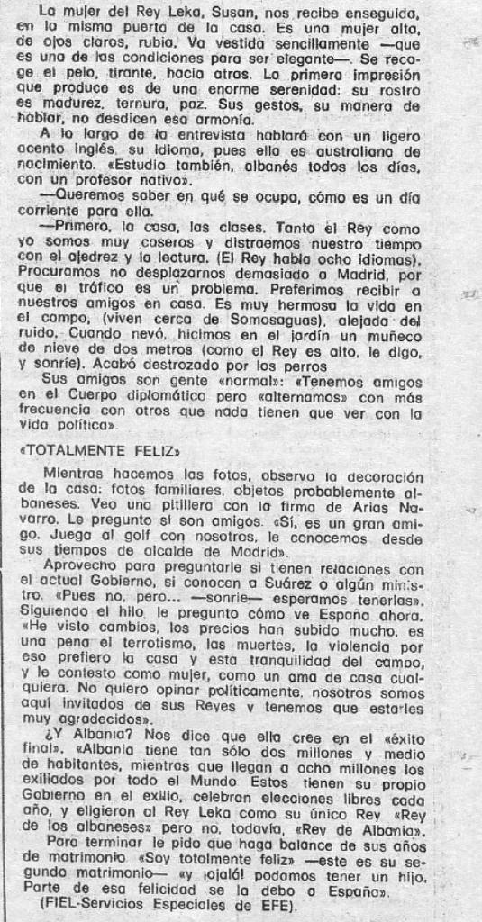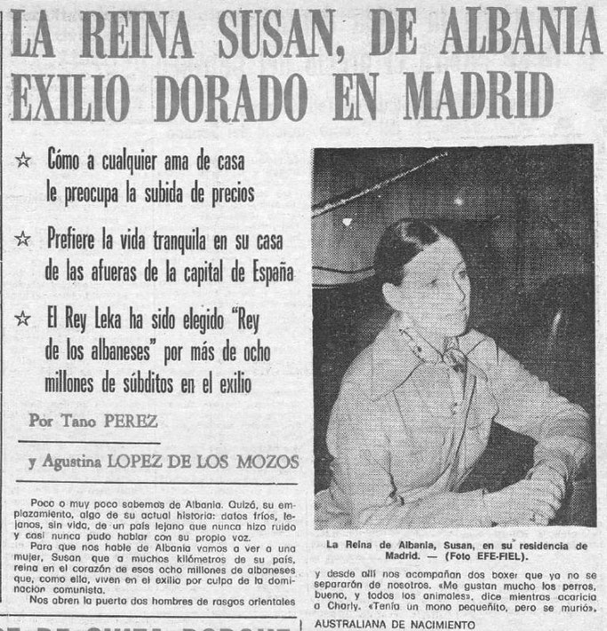 “Diario de Burgos” ka botuar, të enjten e 22 marsit 1978, në faqen n°15, intervistën ekskluzive asokohe me mbretëreshën Susan (nënën e Princ Leka II) në përiferi të Madridit, të cilën, Aurenc Bebja, nëpërmjet Blogut “Dars (Klos), Mat – Albania”, e ka sjellë për publikun shqiptar :