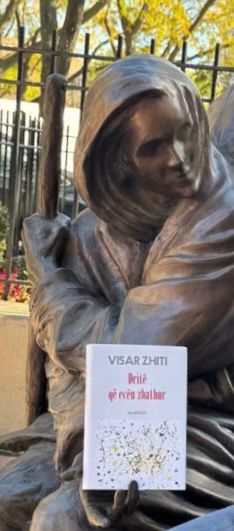 Do bënim një selfie dhe Jani i vuri librin në dorë statujës, sikur ajo po e mbante vetë me dëshirë. Libri në piedestal. Shkonin bashkë: bronzi dhe fjala, torba e lypësit dhe poezia, flatra dhe ëndrra…