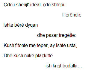 I ka vuajtur dhe Noli shqiptarët e vet, patjetër dhe më shumë, i ka parë në Shqipëri deri në parlament dhe më lart, po edhe larg e pranë, në “Vatër”, prandaj ka dhe këtë strofë kësisoj në poezinë e tij: