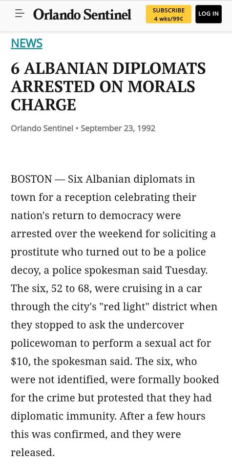 “6 diplomatët shqiptarë i kërkuan seks për 10 dollarë polices së maskuar si prostitutë”, skandali i panjohur në SHBA, dy prej tyre, sot në poste të larta?