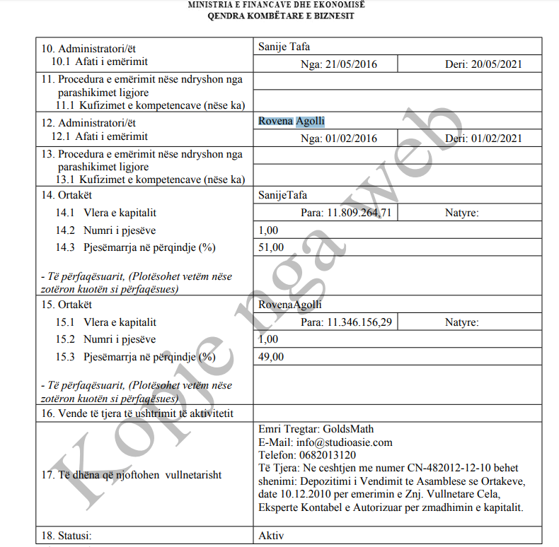 “Drejtoria e Përgjithshme e Taksave dhe Tarifave Vendore nuk ka lidhur kontrata me subjekte tregtare për shfrytëzimin e hapësirave publike”, thuhej në shkresë. Por vetëm pak rreshta më poshtë, e njëjta drejtori pohonte të kundërtën: informacioni ekzistonte, por konsiderohej “e dhënë personale”.
