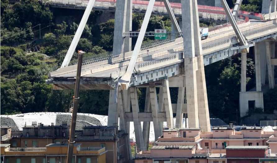 Pamje nga shkatërrimi i Urës Morandi më 2018.
