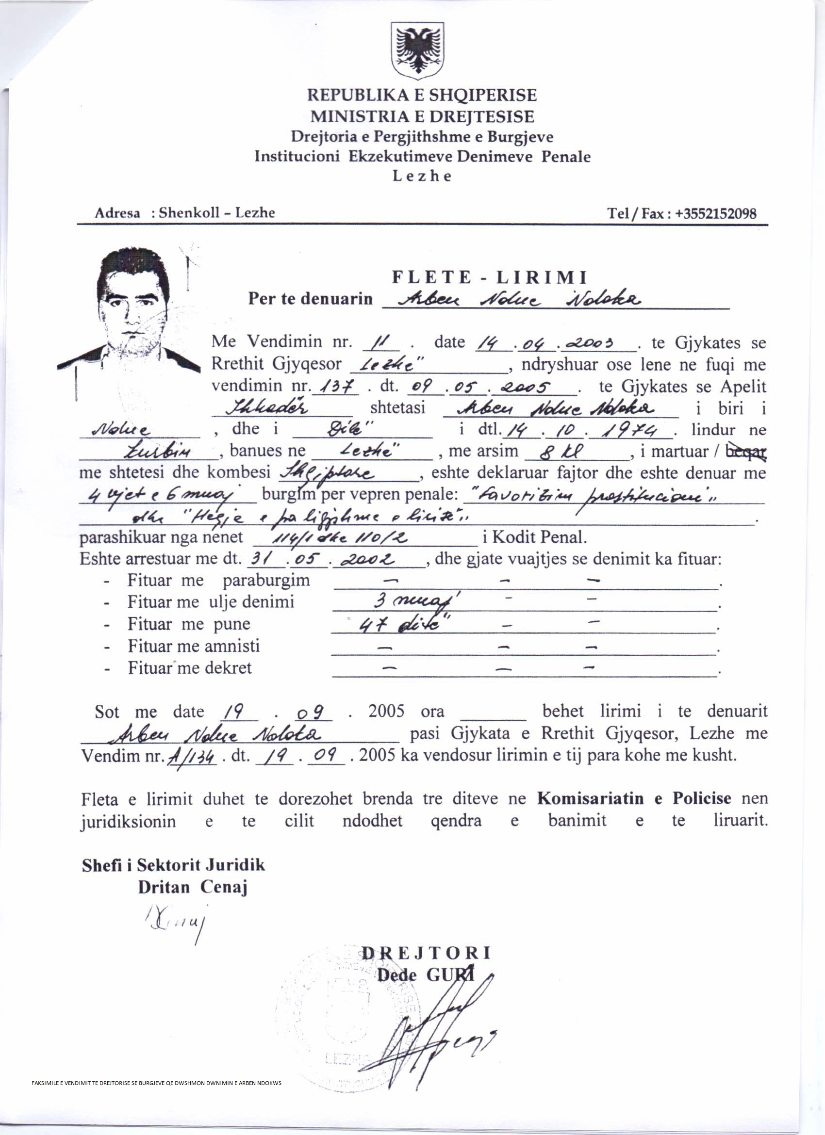 Pak muaj më parë, në një aksion-blic, pas mesnatës, Alla dhe Bajraktari u vunë në pranga nga Kontrolli i Brendshëm i policisë, porse pa u mbushur 24 orë nga arresti, Gjykata e Tiranës vendosi lirimin e menjëhershëm të tyre. Pa kaluar shumë orë nga këto zhvillime të vrullshme, në mënyrë të befasishme dha dorëheqjen ish-kryepolici Artan Didi. Ky i fundit tha se nuk kishte arritur ta parandalonte fshehjen e kërkesës për ekstradim të Frrokut, ndaj largohej nga posti i drejtorit të Policisë së Shtetit. Nga ana e tij, pasi u lirua Bajraktari tha se arrestimi i tij ishte veprim emocional.
