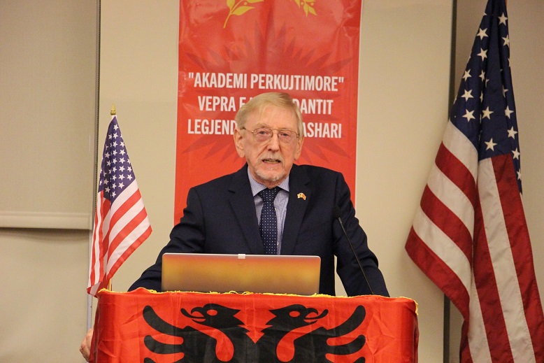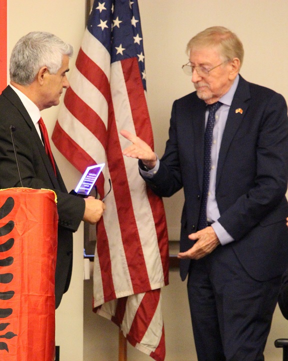 Kur u mblodhëm, pamë se ishim shqiptarë nga të gjitha trevat tona, vërtet Shqipëria natyrale, etnike, – vetëm në SHBA ndodh kjo, – dhe mes nesh erdhi me bashkëshorten e tij dhe kongresmeni i shquar, me origjinë arbëreshe, Joe DioGuardi, që i kushtoi jetën çështjes shqiptare, çlirimit të Kosovës.
