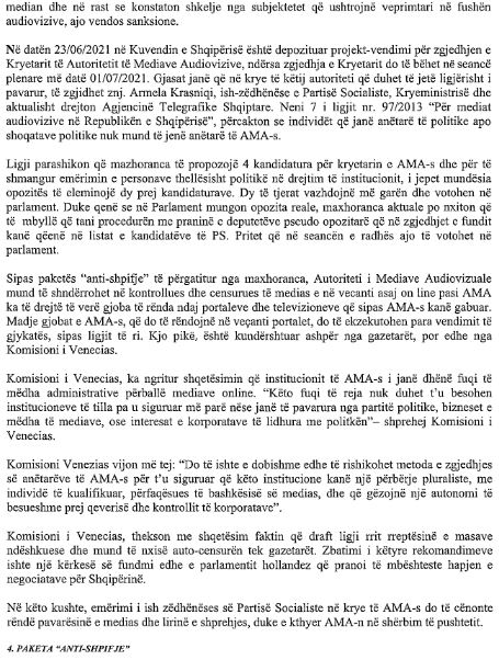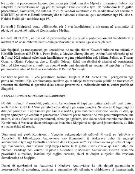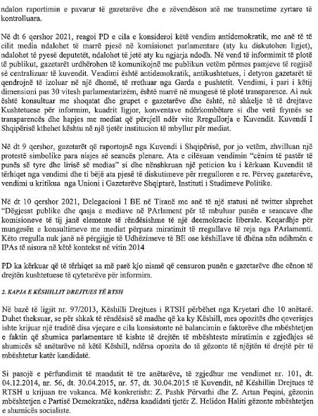 Vetë letra e dërguar paraqet problematikën se si është vepruar në shkelje të mundshme të ligjit me investimet te Operatori i Sistemit të Transmetimit nga qeveria shqiptare dhe zv.kryeministrja, njëkohësisht ministrja e Infrastrukturës dhe Energjisë Belinda Balluku. Kjo e fundit është pezulluar nga detyra prej Gjykatës së Posaçme Kundra Krimit dhe Korrupsionit të Organizuar për akuzat nga SPAK për shpërdorim detyre dhe paracaktim tenderash në grup.
