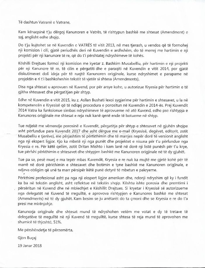 Urime dhe suksese grupit te vatraneve! Dhashte Zoti paqe ne Vater dhe Vatra te kthehet ne binare kushtetues dhe ne misionin e saj perbashkues dhe mbrojtes te interesave shqiptare ne USA.”, përfundon Valentin Lumaj.