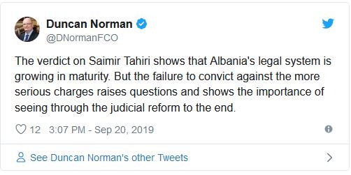 Ambasadori britanik: Dënimi i Tahirit jo për akuzat më serioze ngre pyetje