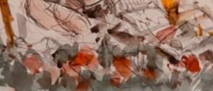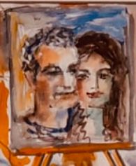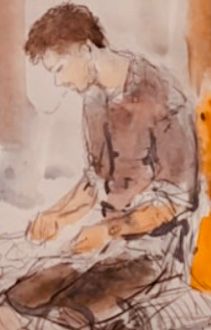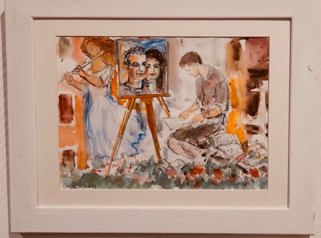 Akuareli “Artisti i piktorit Gjergj Kola dhe fragmente të veprës.
