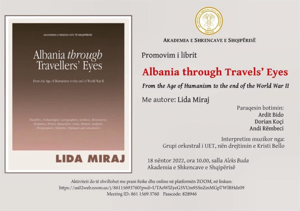 ASHSH organizon promovimin e librit të autores Lida Miraj-Shqipëria në sytë e udhëtarëve nga Periudha e Humanizmit deri në fund të LDB