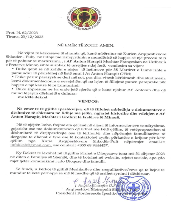AT ANTON HARAPI: LUFTOVA PËR BASHKIMIN E SHQIPTARËVE! – Nga Frank Shkreli