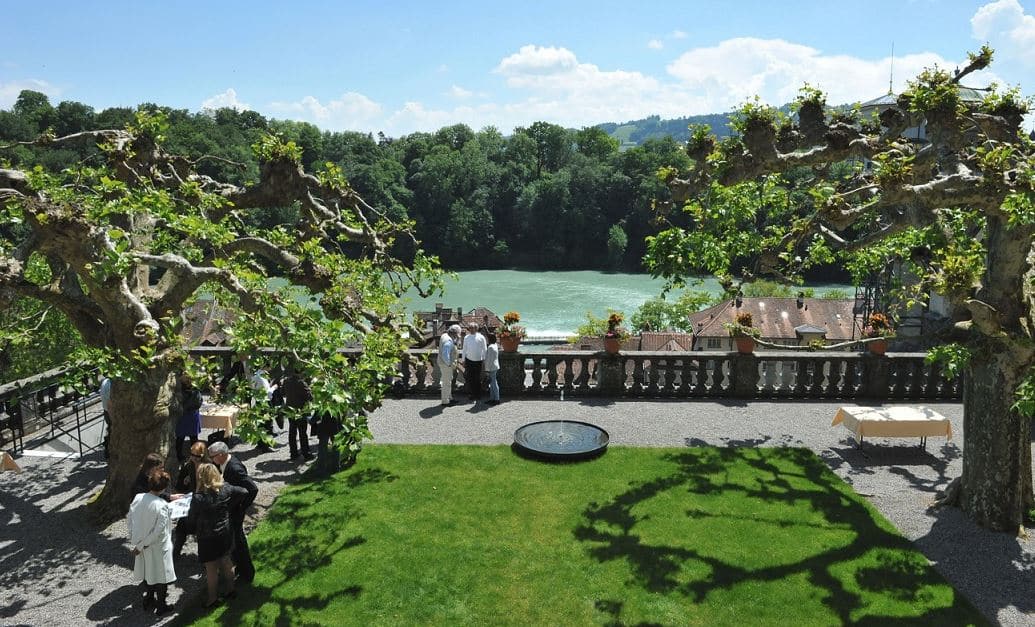 Në kopështin e Maison Watteville nga ku shfaqet madhërishëm Lumi Aare