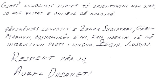 Kur dikush vendos t`i bëjë portretin vetvetes publikisht, është si të tregojë një anekdotë apo të shkruaj “nekrologjinë”. Për shkaqe parimore, edhe në këtë intervistë do të mbajë një profil të ulët. Me arsye, postoj disa fotografi private prej më të thjeshtave, pa vezullime. Herët tjera…