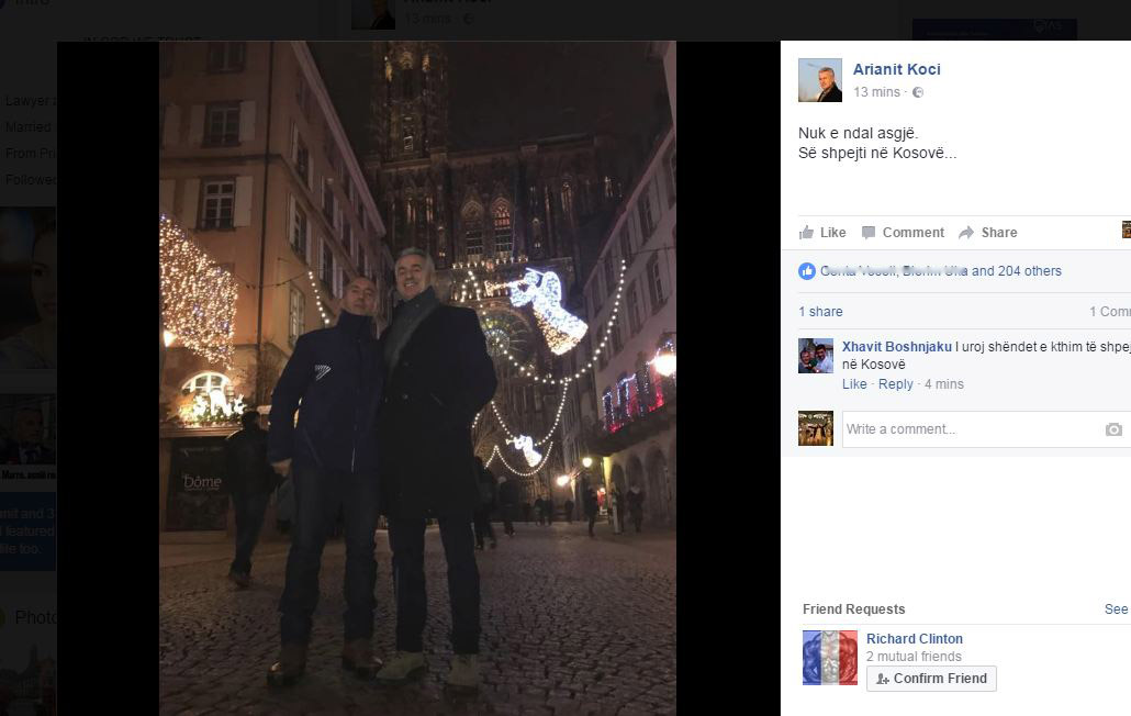 Avokati Arianit Koci përmes një postimi në Facebook ka publikuar një fotografi me Haradinaj, ku edhe ka shkruar shumë shpejt në Kosovë.