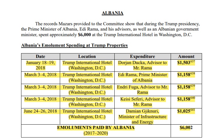 BIRN zbulon raportin e Kongresit të SHBA: Edi Rama shpenzoi mijëra dollarë në hotelin e Trumpit