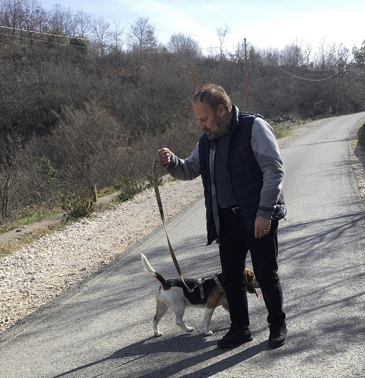 Morëm të përpjetën e rrugës, s’përmbahej, duhej ta tërhiqje rripin fort, ndryshe do të vrapoje pas tij. M’u duk se ai u lodh i pari dhe ndalëm diku. Nisa ta ledhatoj dhe donte ledhatime. I mora kryet kaf ndër duar dhe e pashë në sytë e errët si pllangat e zeza, aq të ngrohta që kishte mbi kurriz. Këmbët e bardha sikur të kishte çizme të bardha. I shikoja gjuhën aq të gjatë dhe i thashë mikut në e kishte nga lodhja. Ai vetëm qeshi. Mbase do që t’i flasësh, më tha, si dikur.
