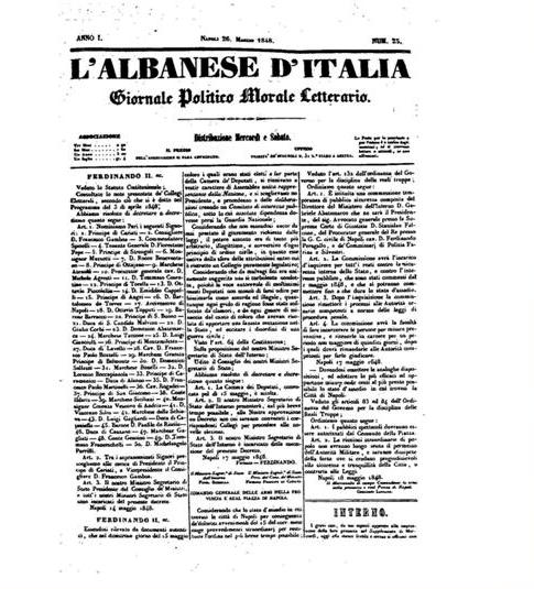 Bota kulturore arbëreshe në gazetën “Shqiptari i Italisë” (1848) – Nga Dr. Dorian Koçi*