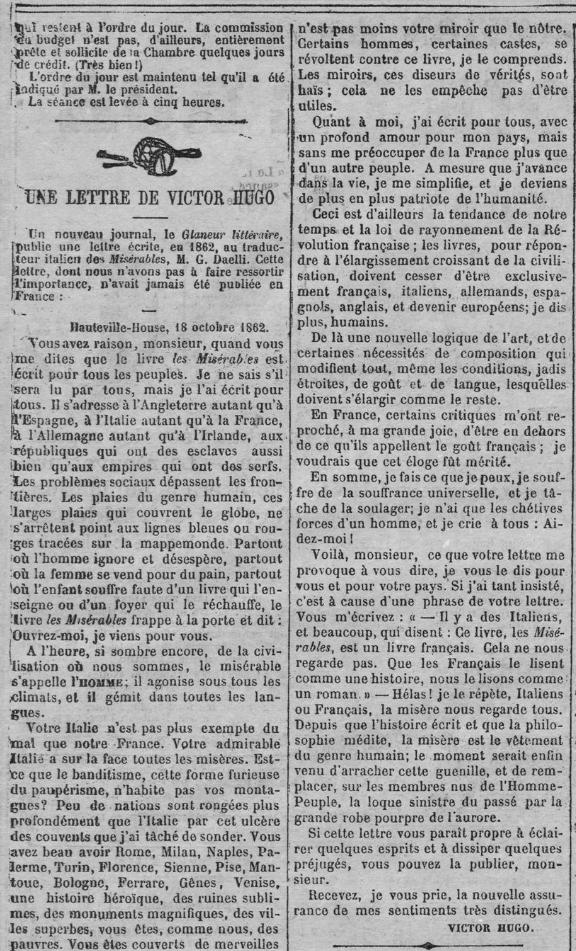 Çfarë e shtyu Victor Hugonë t’i shkruante përkthyesit italian të romanit të tij “Les Misérables”? (Letra e 1862)