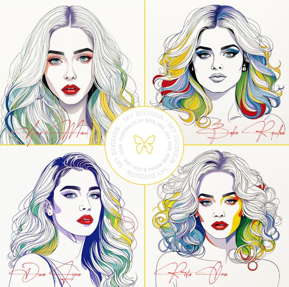 Colorful portraits of Rita Ora, Ava Max, Bebe Rexha & Dua Lipa