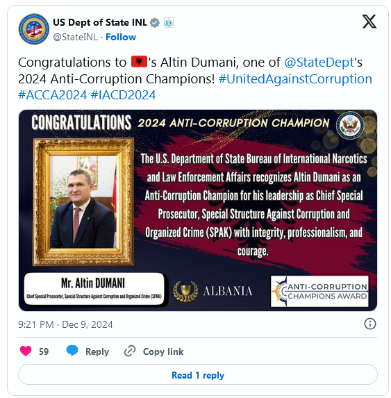 DASH nderon Altin Dumanin si kampion kundër korrupsionit