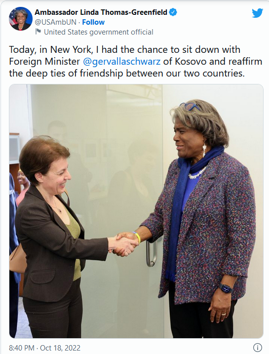 “Më në fund e shkëputur nga rruga e vështirë e anëtarësimit të Maqedonisë së Veriut në BE, Shqipëria po bën përparime mbresëlënëse drejt anëtarësimit. Sundimi i ligjit mbetet një kërkesë thelbësore. Shtetet e Bashkuara dhe shtetet kryesore të BE-së prej kohësh kanë mbështetur përpjekjet për të ndërtuar një gjyqësor të pavarur, të besueshëm dhe efikas në Shqipëri.