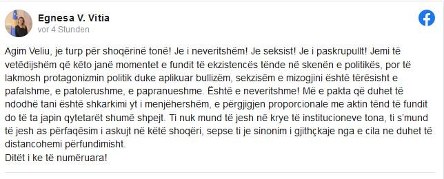 Dënohet deklarata mizogjiniste e Agim Veliut ndaj Vjosa Osmanit