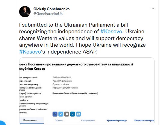 Denoncimi i deputeti ukrainas, Oleksiy Goncharenko – Serbët më kërcënuan… Paraqiti rezolutën për njohjen e Kosovës,