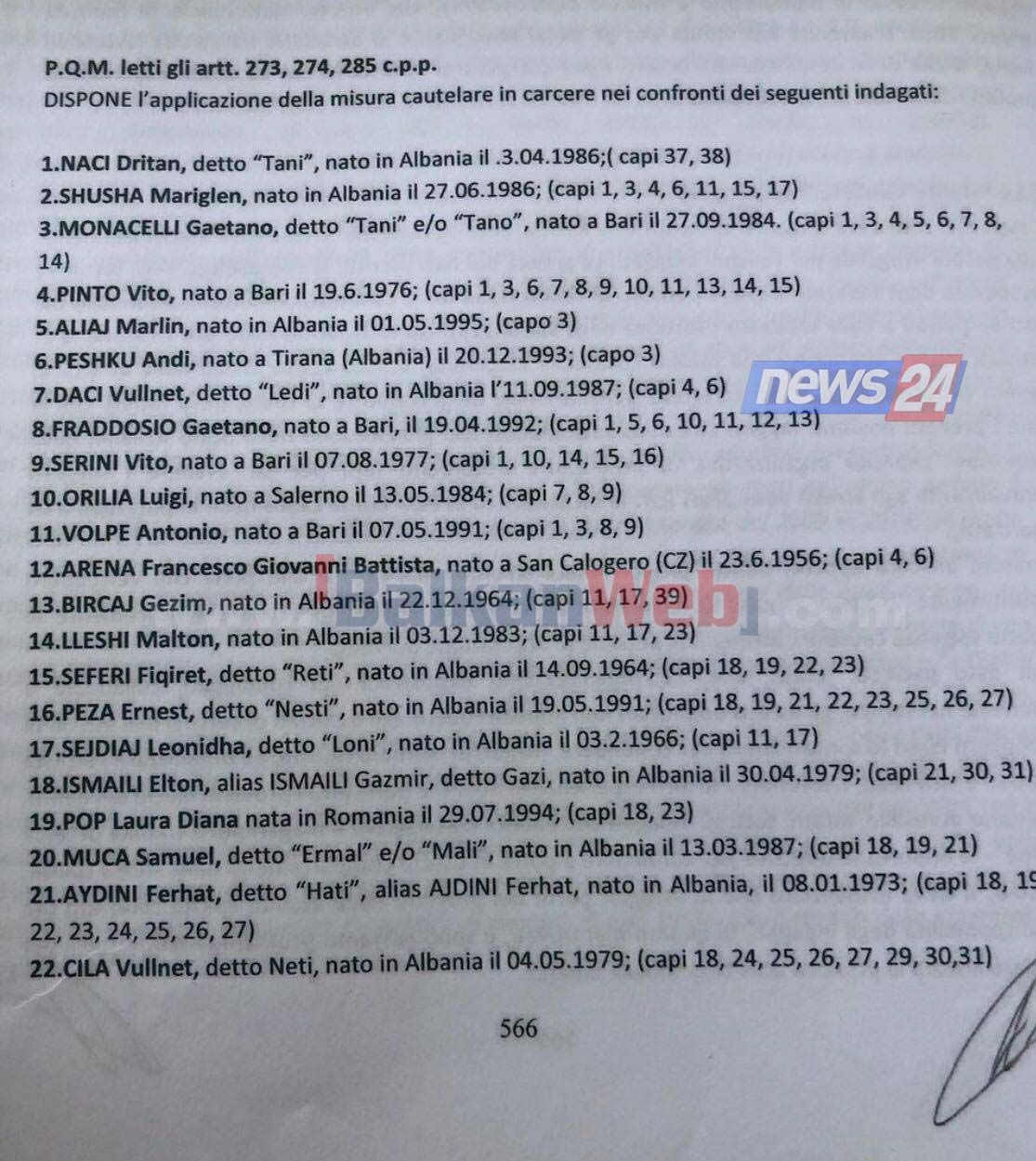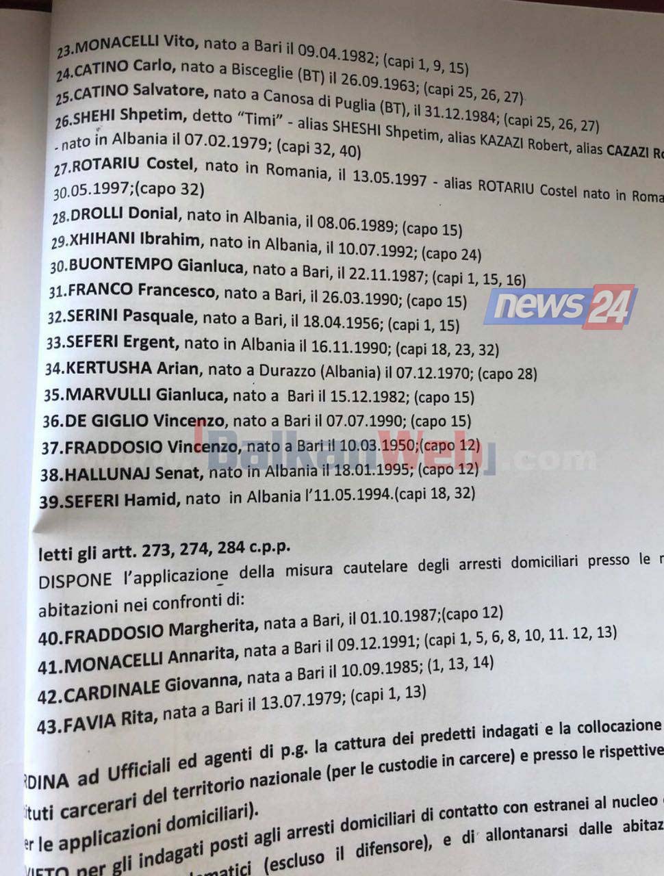 Dokumenti: Drogë nga Shqipëria në Itali – Ja 43 të arrestuarit nga operacioni “Shefi” (Emrat e shqiptarëve)