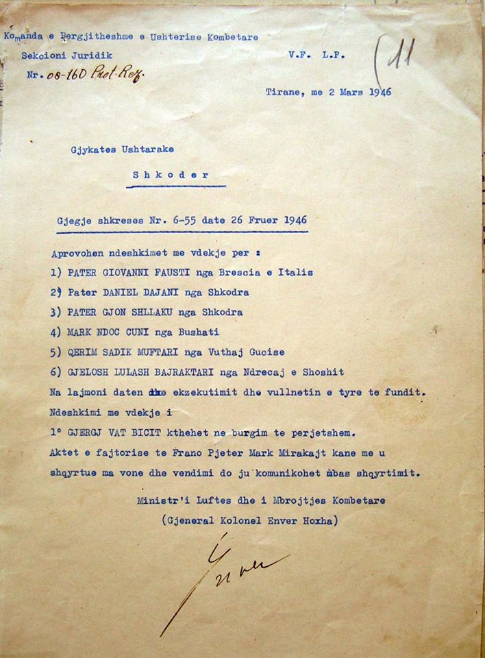 Dokumenti – Kur Enver Hoxha urdhëronte ekzekutimin e 6 klerikëve të lartë dhe intelektualëve