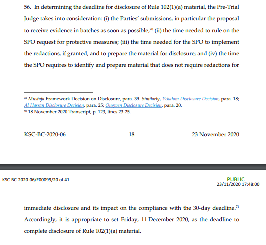 Dosja Thaçi dhe të tjerët, Smith deri më 11 dhjetor të publikohen dëshmitë dhe dëshmitarët