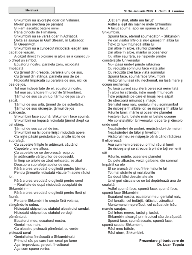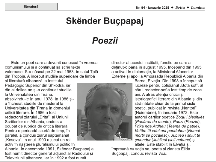 Dr. Luan Topçiu përkthen dhe boton në Rumani cikël poetik nga Skënder Buçpapaj