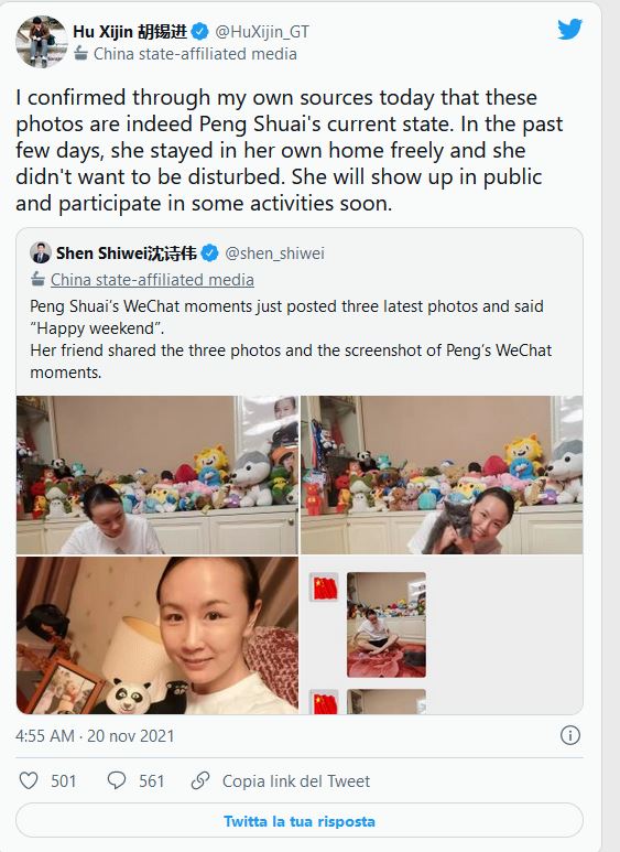Drejtori i gazetës shtetërore kineze: Tenistja Peng Shuai do të kthehet “së shpejti në publik”