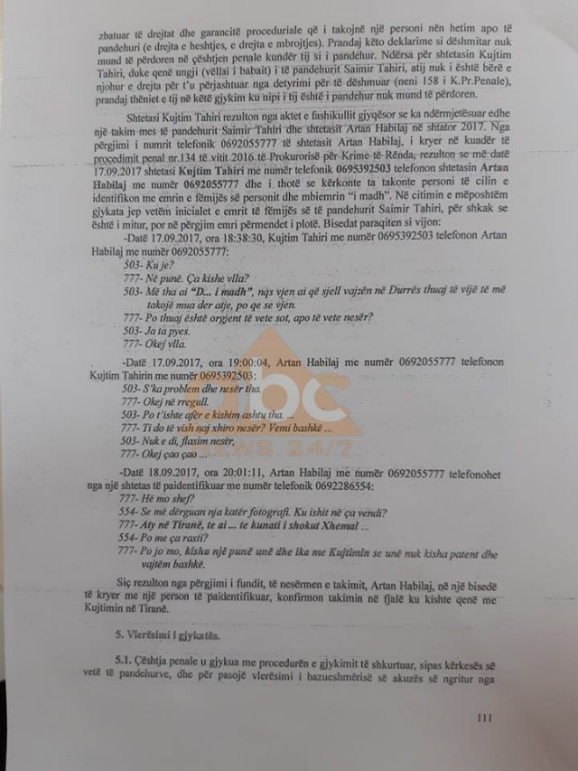Në fashikujt e vendimit për Saimir Tahirin, të cilin gjykata e Krimeve të Rënda e ka arsyetuar mjaft gjatë, rezultojnë edhe dy përgjime të rendësishme sipas prokurorisë.
