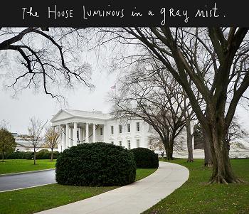 Shtëpia e dritëshme nën një mjergull të qumësht.