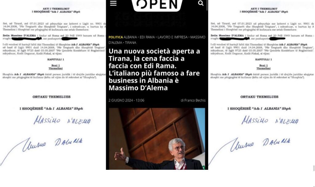 “E kisha thënë disa muaj më parë.E sot erdhi konferma nga mediat italiane.Massimo D’Alema ish KM Italian me kompani biznesi në Shqipëri. Në Itali mediat po shpërthejnë nga lajmet. Në Shqipëri HESHTJE!”
