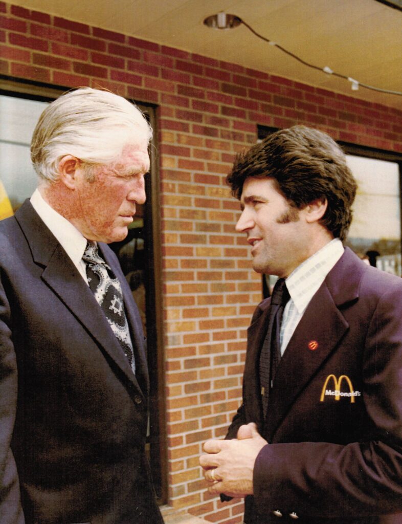 Me Guvernatorin George Romney në ditën e hapjes së restorantit të parë McDonalds, në Michigan.Guvernatori është edhe babai i kandidatit presidencial republikan Mitt Romney, në 2012.Edhe George Romney kandidoi për president. U mund nga Richard Nixon në garën brenda Partisë Republikane.