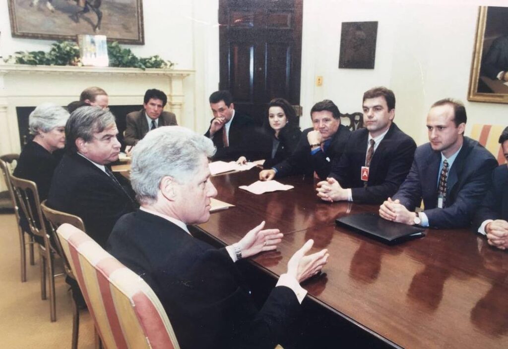 Ekrem Bardha, i treti nga e djathta, në takimin e NAAC me Presidentin Bill Clinton në Shtëpinë e Bardhë, gjatë Luftës në Kosovë, 1999.
