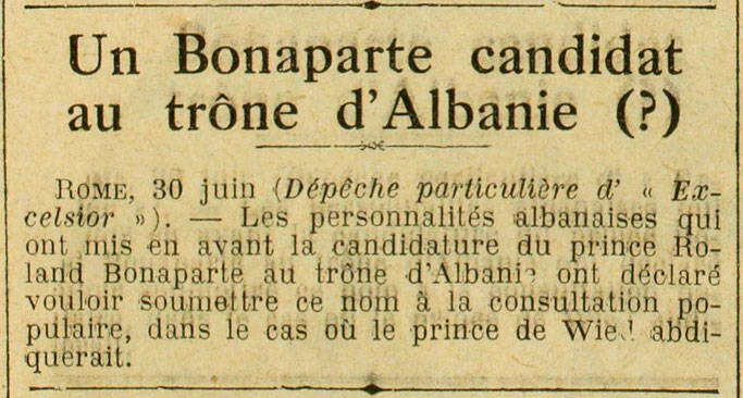 Excelsior – Kur froni i Shqipërisë u propozohej, më 1914 dhe 1922, trashgimtarëve të Napoleon Bonapartit