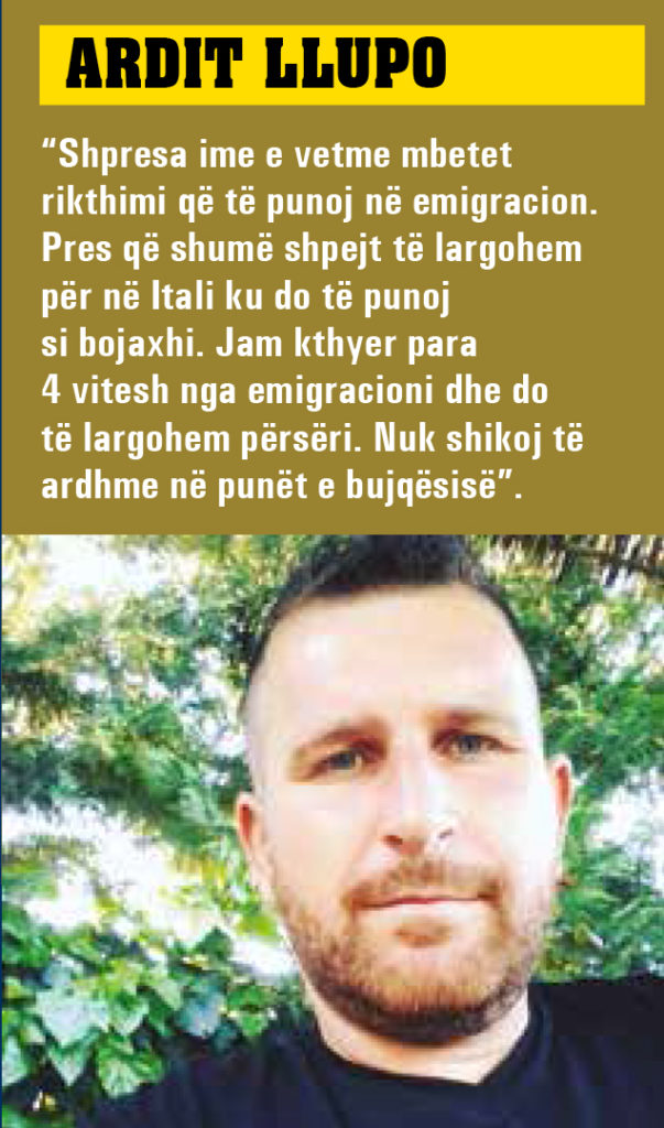 “Shpresa ime e vetme mbetet rikthimi që të punoj në emigracion. Pres që shumë shpejt të largohem për në Itali ku do të punoj si bojaxhi. Jam kthyer para 4 vitesh nga emigracioni dhe do të largohem përsëri. Nuk shikoj të ardhme në punët e bujqësisë”.