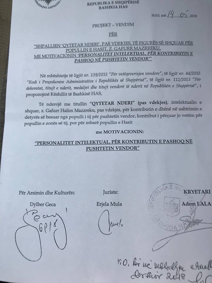 Flamur Noka: Me urdhër të Ramës, atentatori i Azem Hajdarit, “Qytetar Nderi” i Hasit (dokument)