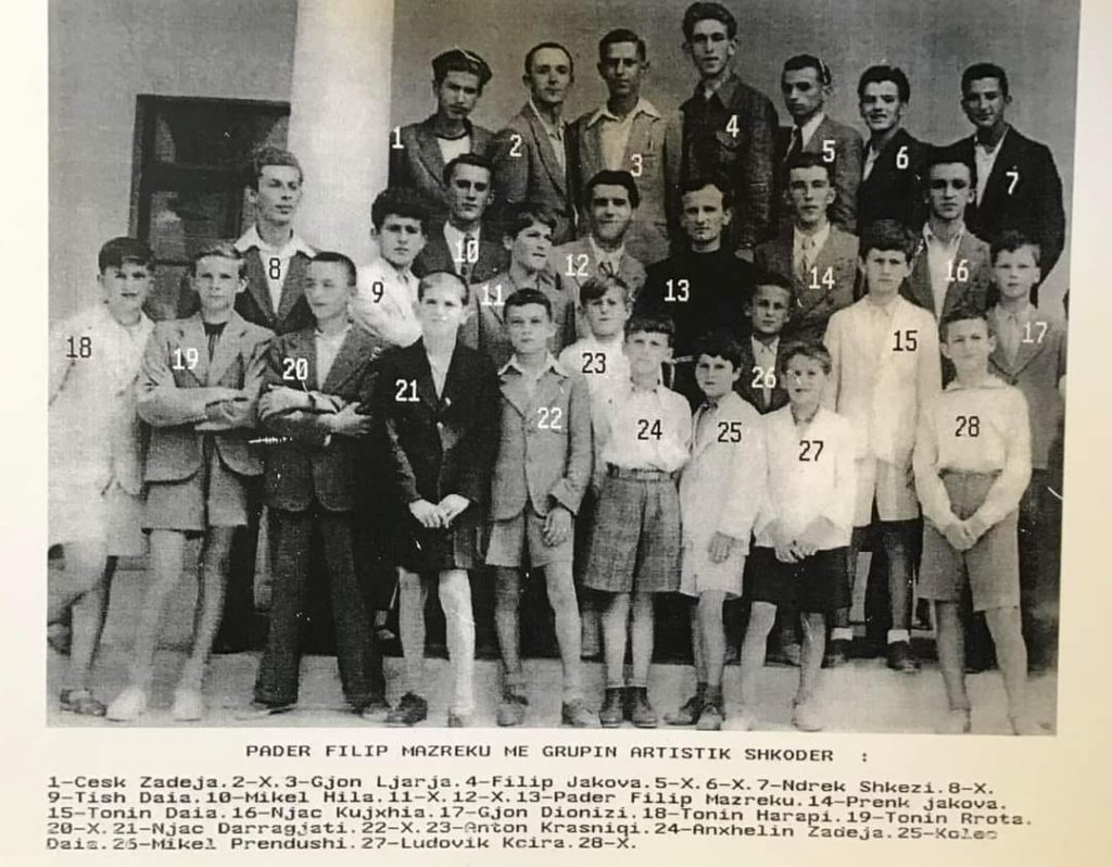 Foto histori: Padër Filip Mazreku me grupin artistik Shkodër