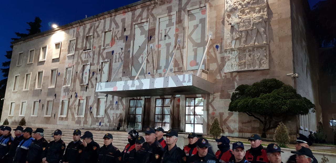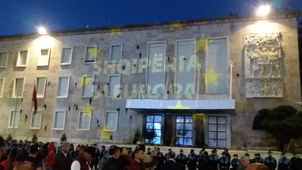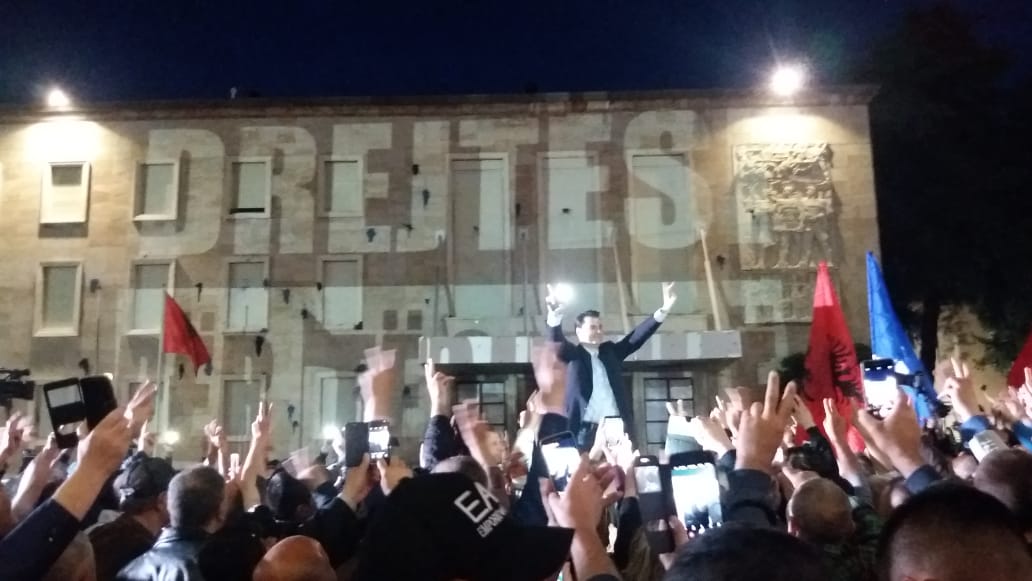 Ai ndërsa doli në foltore, mori në dorë një poster me zv/kryeministren Belinda Balluku, që lidhet me skandalin e fundit të aferës së tenderit të Llogarasë, për të cilën ajo është marrë e pandehur nga SPAK.