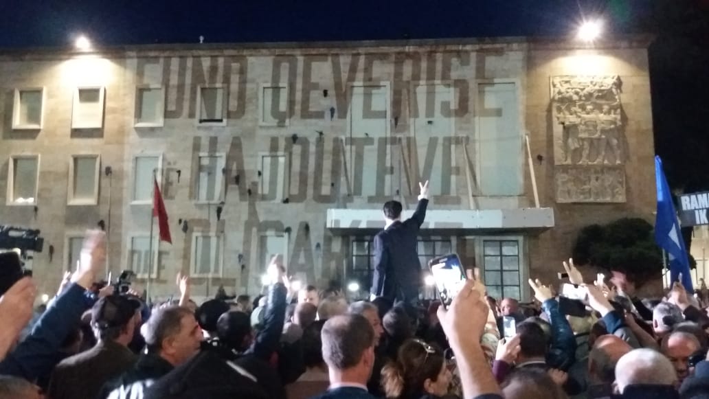 FOTOT- Berisha i vendos Ramës te karrigia bosh posterin e “Lubi Ballukut”