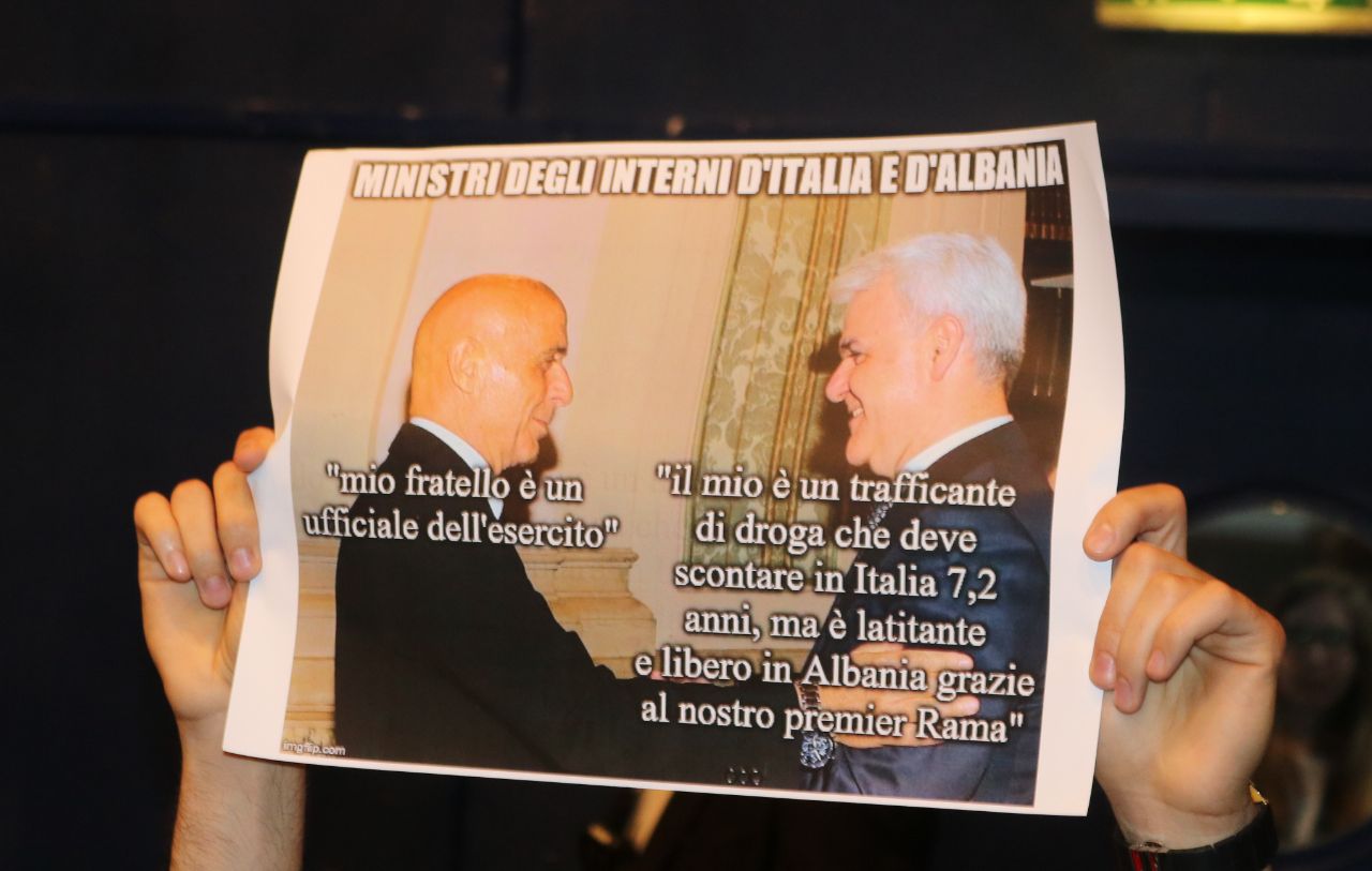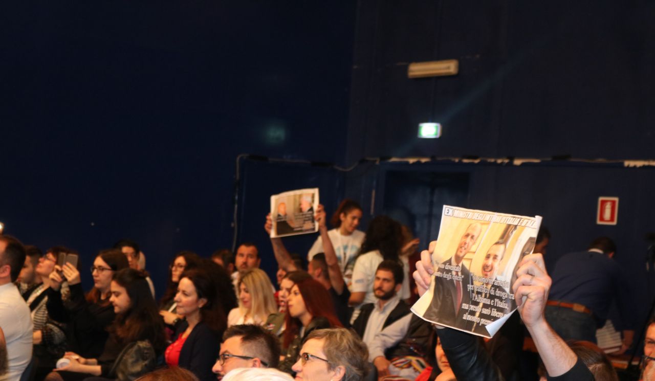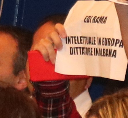 Fotogaleri: Rama promovon librin në Itali, 5 të rinj protestojnë me pankarta në duar