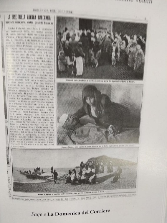 Kjo foto është botuar së pari në një gazetë italiane (“La Domenica del Corriere”, shtojcë javore e “Corriere dela Sera”) të datës 25 maj-1 qershor 1913, në një artikull redaksional me titull: “La fine della Guerra Balcanica” (Fundi i Luftës Ballkanike). Pak ditë më pas, në qershor 1913, fotoja u botua, sërish në Itali, në ballinë dhe në brendësi të librit “L’assedio di Scutari” (Rrethimi i Shkodrës) të gazetarit Italian Gino Berri, korespondent shtypi në Shkodër gjatë rrethimit të qytetit. Gjatë kësaj periudhe në qytet e rrethina pati luftime të ashpra midis sulmuesve dhe mbrojtësve të qytetit, shoqëruar me shumë të vrarë e plagosur nga të dy krahët. Njeri prej tyre, nga ana e mbrojtësve, sipas shënimeve të gazetës është edhe i plagosuri që paraqitet në foto. Kjo foto e Macës gjendet në faqen 133 të librit të G. Berrit dhe shoqërohet me poshtëshënimin: “Montagnuola che assiste il padre morente, colpito al capo e alla mano destra” (Malësore që rri pranë të atit që po vdes, i goditur në kokë dhe në dorën e djathtë). Fotoja e godit menjëherë shikuesin e saj me dhëmbshurinë e vajzës për të atin që po largohet nga kjo botë dhe të mbush me ndjenja humane universale.