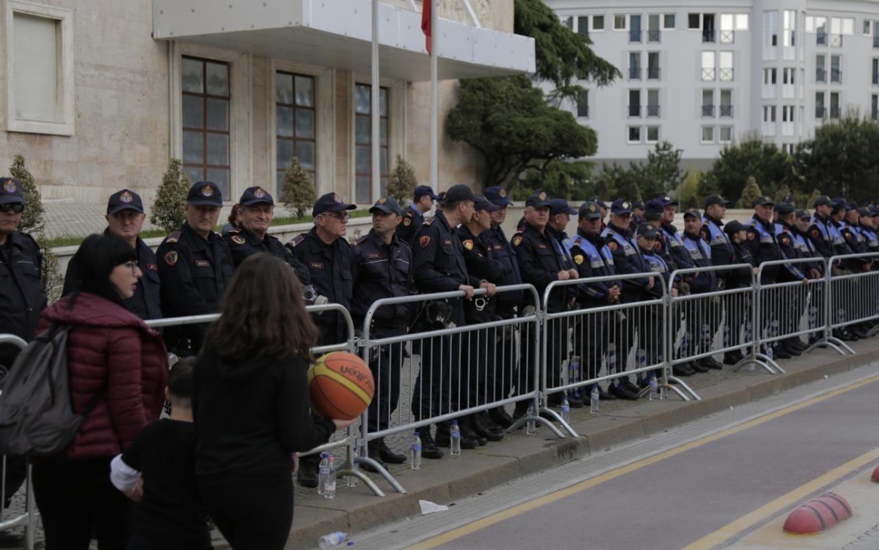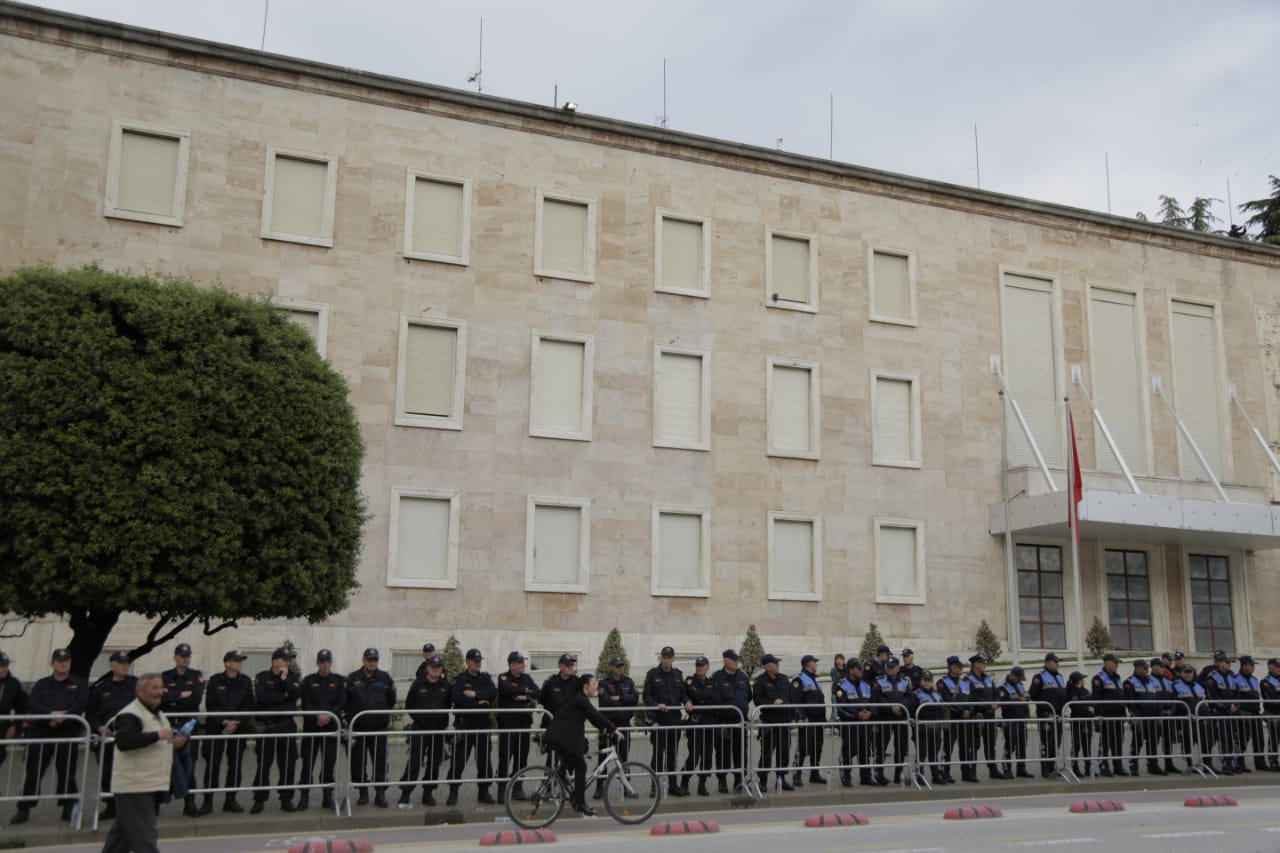 FOTOT – Protesta e opozitës, forcat e rendit gardh para Kryeministrisë