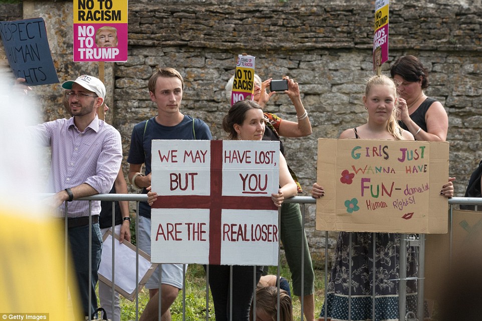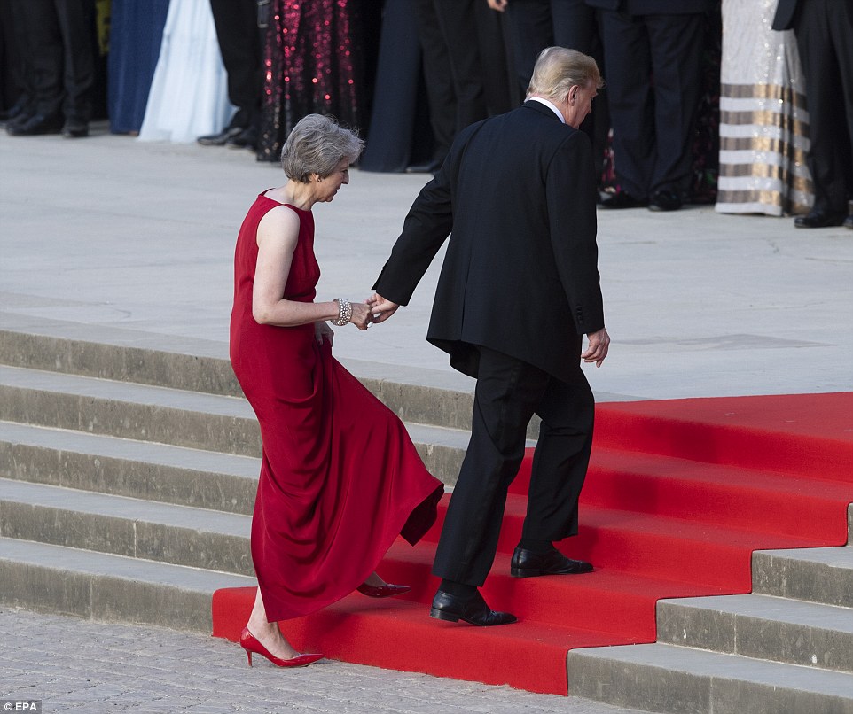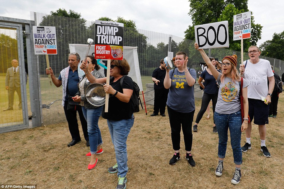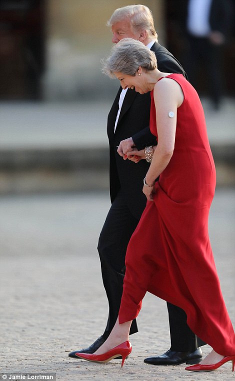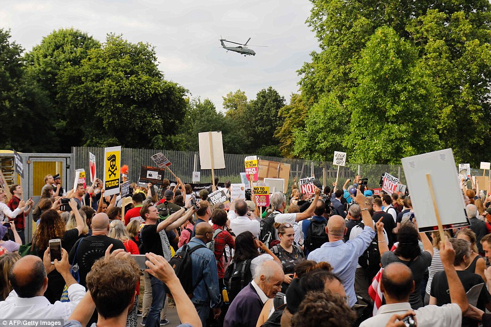 FOTOT – Nga përballja me protestat te ecja përdore me Mayn, si u prit Trumpi në Britani