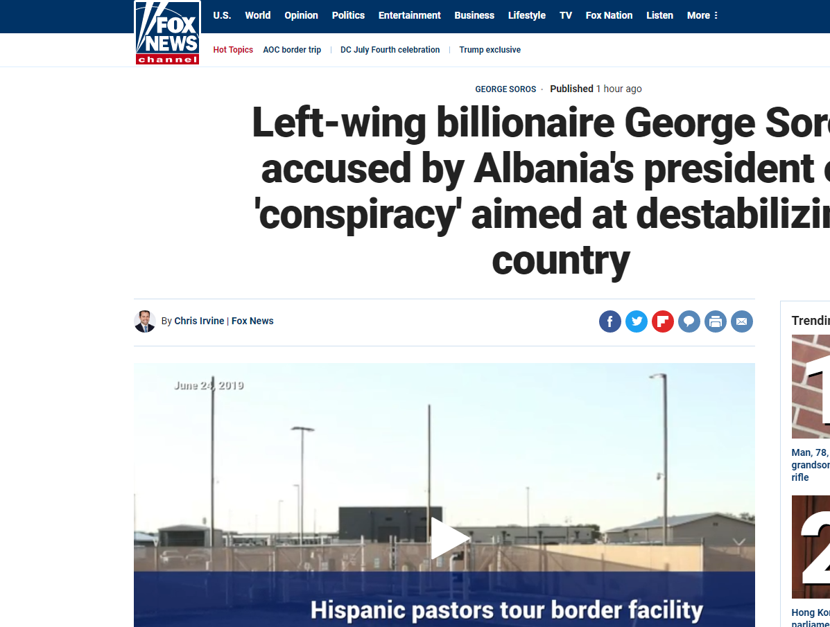 Fox News: Soros akuzohet nga presidenti i Shqipërisë për “komplot”